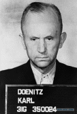 Карл Денниц — гросс-адмирал, командующий подводным флотом, с 1943 г. главнокомандующий военно-морскими силами Германии; после самоубийства Гитлера его преемник на посту главы государства. По приказу гросс-адмирала топились госпитальные суда и пароходы, на которых эвакуировались мирные жители, в том числе старики, женщины, дети, не предпринимались меры для спасения команд с потопленных кораблей и т.д.