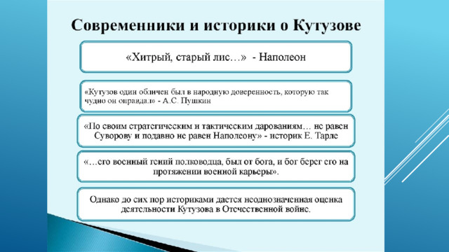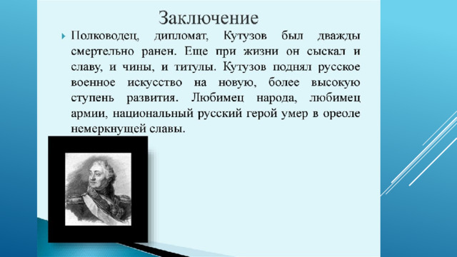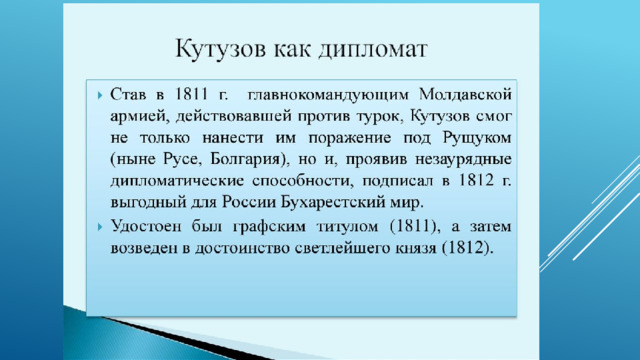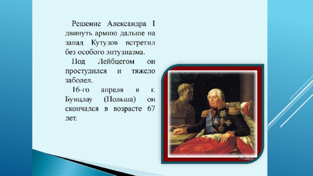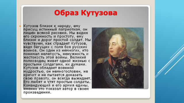 Кутузова можно объяснить как получением