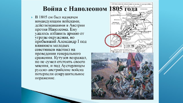 своего мнения, и под Аустерлицем русско- австрийские войска потерпели сокрушительное поражение.