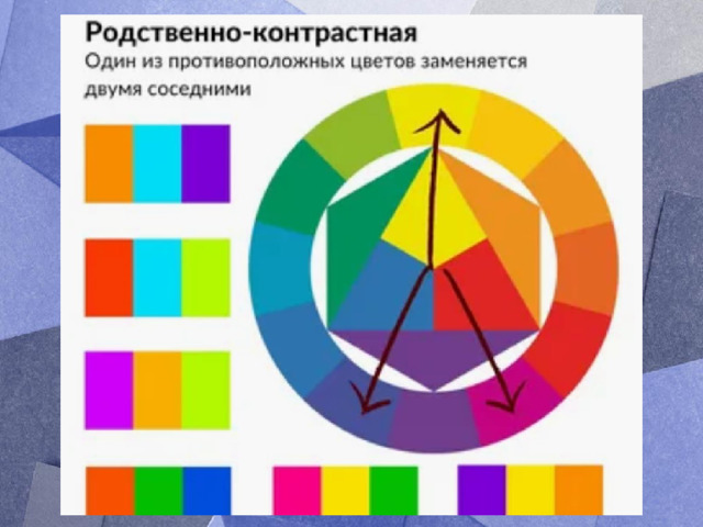 Задание: на примере композиции распределить родственно контрастные цвета.