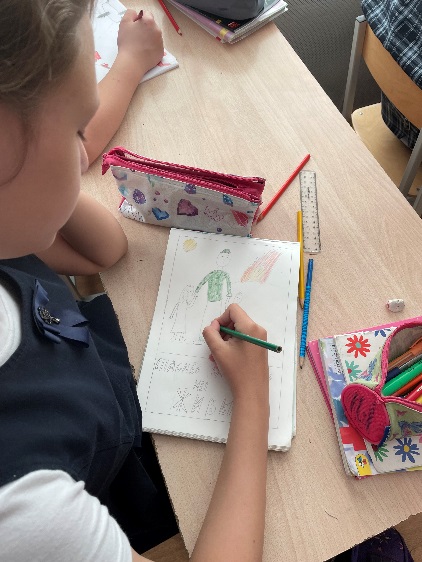 Практическая часть урока: дети на формате А-4 рисуют цветными карандашами агитационный плакат. (Приложение 1)