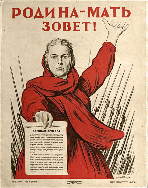 Среди первых плакатов Отечественной войны следует отметить плакат художника И. Тоидзе «Родина-мать зовет».