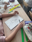 - Ребята, у всех все сегодня получилось? Кто считает, кто выполнил свою работу аккуратно и правильно поднимите правую руку, а у кого сегодня получилось не все так как нужно, но он будет в следующий раз стараться поднимите левую руку.