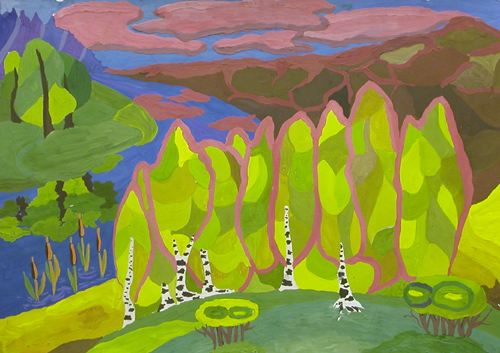 Сегодня на уроке мы будем рисовать пейзаж, но не простой, а декоративный. Как же его таким сделать мы сейчас и узнаем.