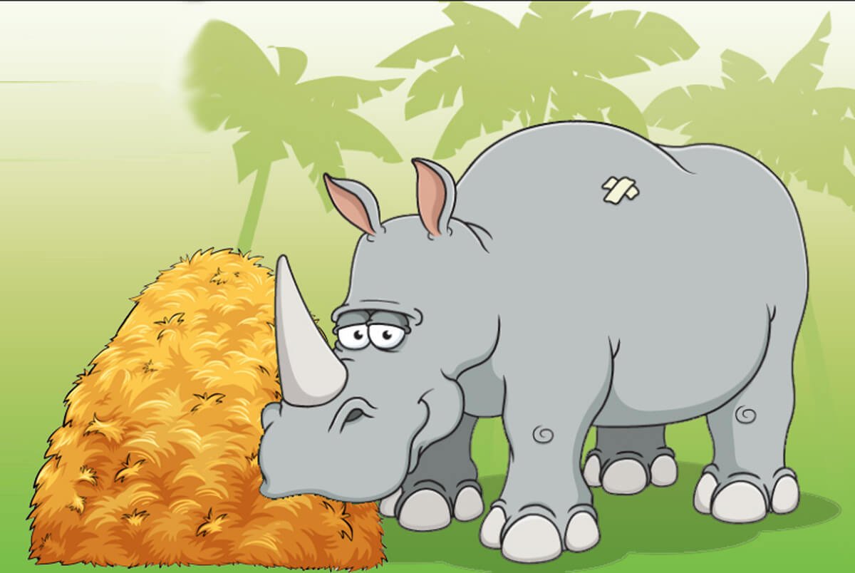 Носорог не кровожадный, Потому что травоядный. А его рога, копыта – Это от врагов защита.