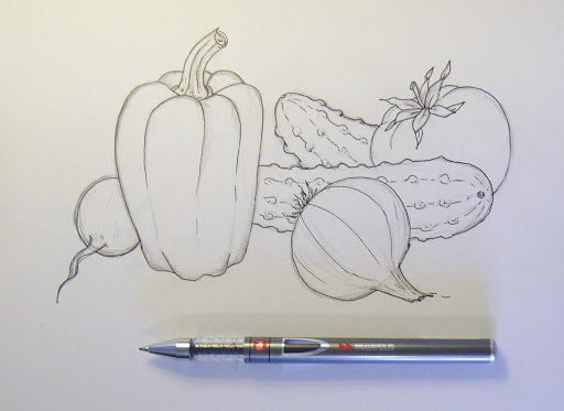 Ссылка: рисуем натюрморт с овощами и фруктами.