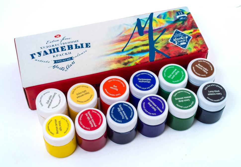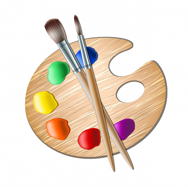 Палитра и кисти, гуашь.