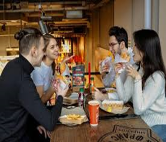Вам предстоит сделать выбор между обедом в столовой (здоровая пища) и обедом в фастфуде с друзьями.