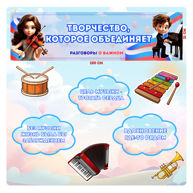 Цель занятия в 1-11 классах: формирование ценностного отношения обучающихся к творчеству и понимания роли искусства в личностном становлении и духовном обогащении; поддержка мотивации к развитию собственных талантов; осознание значимости российской культуры как части мирового наследия.