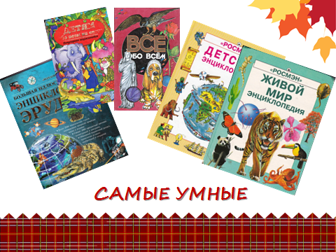 А это самые умные книги – энциклопедии. Они знают много интересного. И, я надеюсь, каждый из вас найдет в них что- то интересное для себя.
