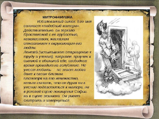 Митрофанушкатупой и ленивый, эгоистичный, жестокий и хитрый: воплощение дремучего невежества и нравствен-
