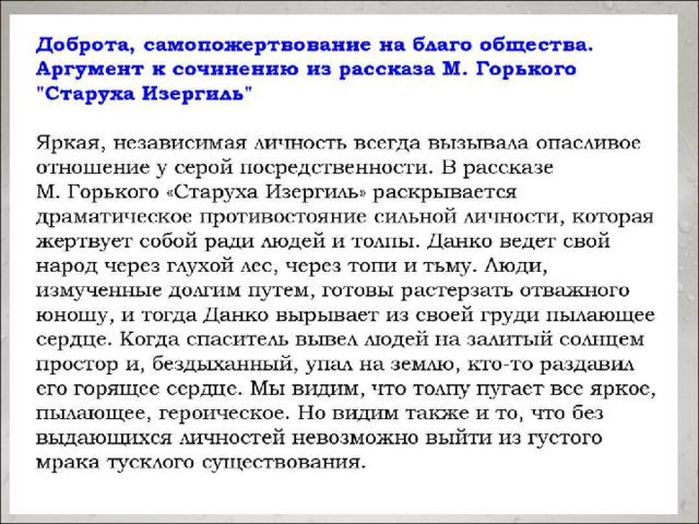 «М.Горький "Старуха Изергиль" (подготовка к итоговому сочинению)»
