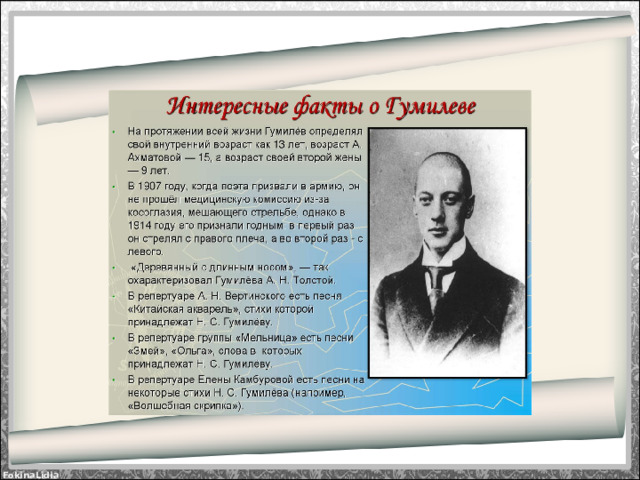 - Н.С. Гумилёв любил…