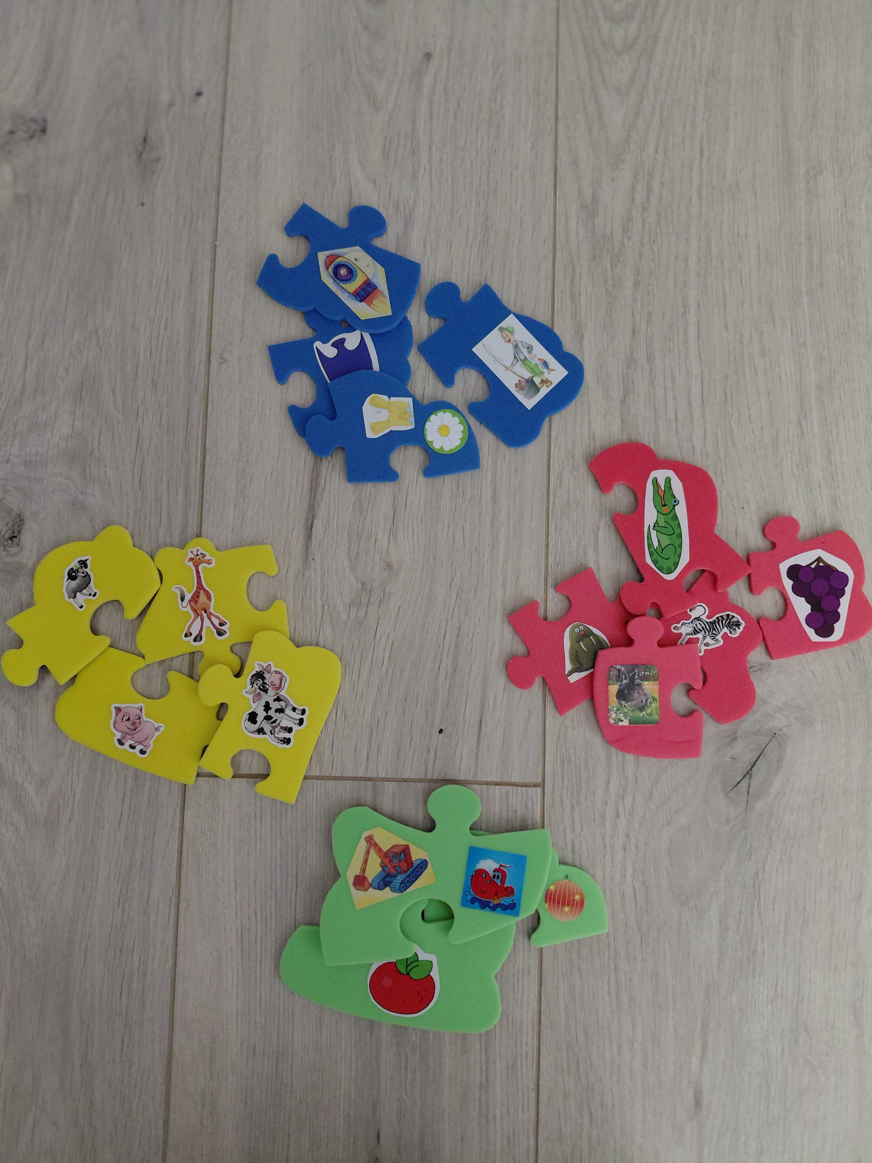На каждом пазле с обратной стороне -картинка, в названии которой живёт звук «Р». Ребёнок вытаскивает пазл, называет картинку с правильным звуком и кладет его по цвету. Если у ребенка звук автоматизировался, то можно ему предложить повторить за логопедом стихотворение или чистоговорку на эту картинку.