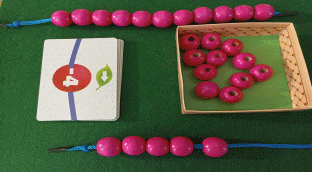 У логопеда и ребенка в руках по шнурку-это травинки, на которые в ходе игры будут нанизаны ягодки. Игроки берут по очереди карточки из стопки и выполняют задания. Задача каждого игрока — выполнить задания правильно. Во время игры участники будут передавать ягодки-бусины друг другу разными способами, а так же собирать их на свои шнурки-травинки. Выигрывает тот игрок, у которого будет большее количество собранных ягод.