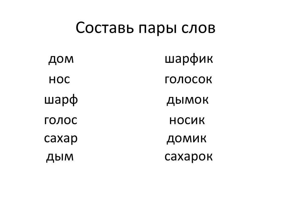 Цель: практическое усвоение уменьшительно-ласкательной формы существительных.