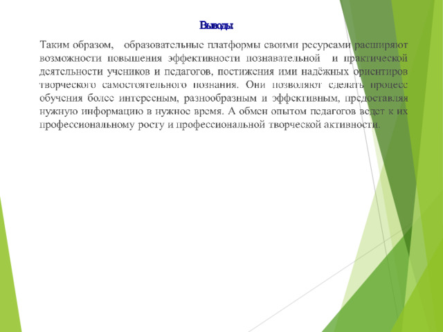 образовательныеплатформы являются удачным источником информации для педагогов , задача которых заключается в подборе и внедрении материала в учебный процесс. Необходимо использовать эти инструменты для разнообразия процесса обучения, развития интереса школьников, повышения мотивации к обучению, повышение качества обучения и эффективности.