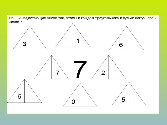 И покатился наш колобок дальше, а навстречу ему серый волк. Ребята, волк просит определить состав числа 7. Как можно получить число 7 разными способами?