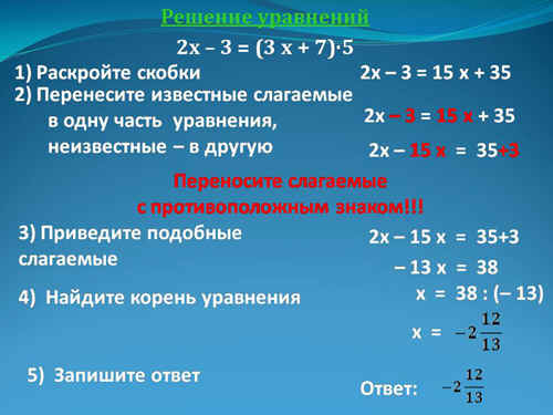 При решении уравнений важно уметь приводить подобные слагаемые.