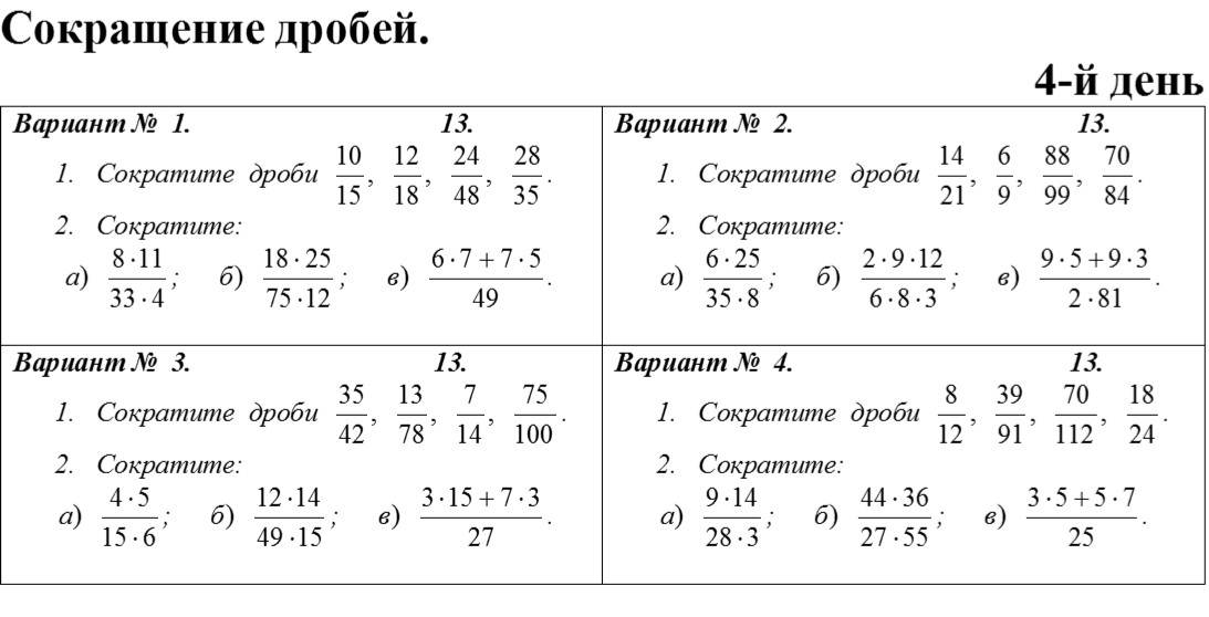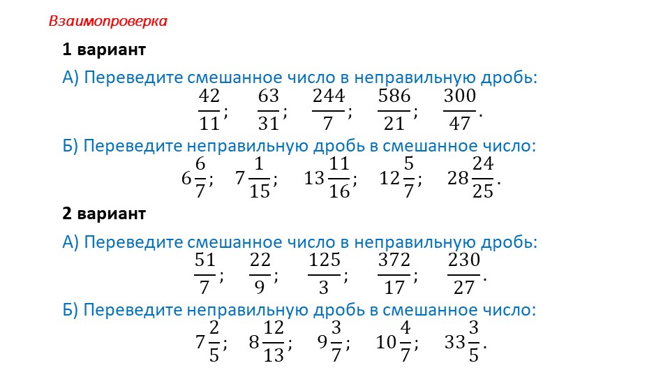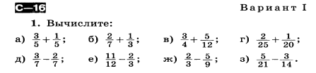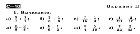 Контрольная работа по теме: "Действия с дробями"