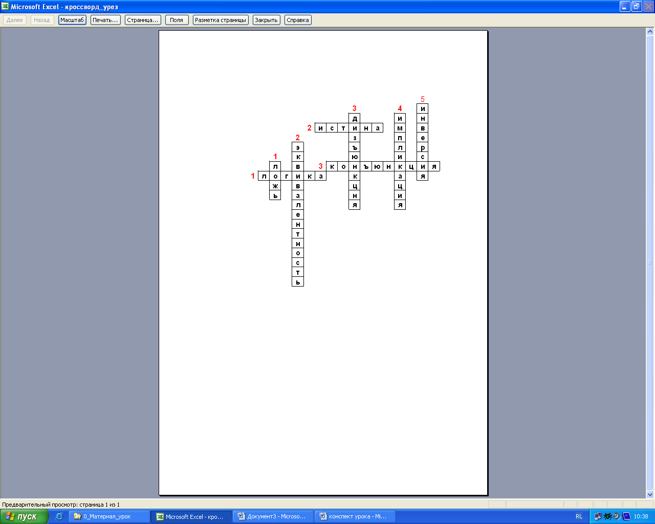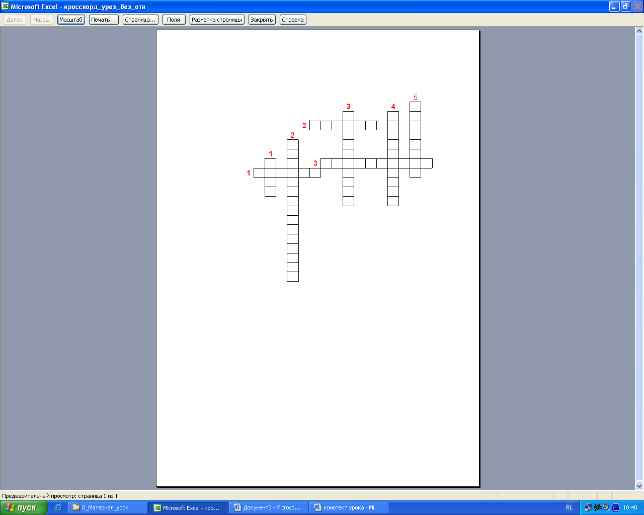В качестве музыкально интеллектуальной паузы–обобщение предлагаю вам заполнить небольшой кроссворд (Приложение 8). Причем заполнить нужно коллективно, пока звучит музыка – 5 минут. Как только музыка закончится, заполнение прекращаем. Ваше задание – успеть вписать как можно больше слов. Если успеваете все, каждый может записать по 1 баллу в свою копилку.