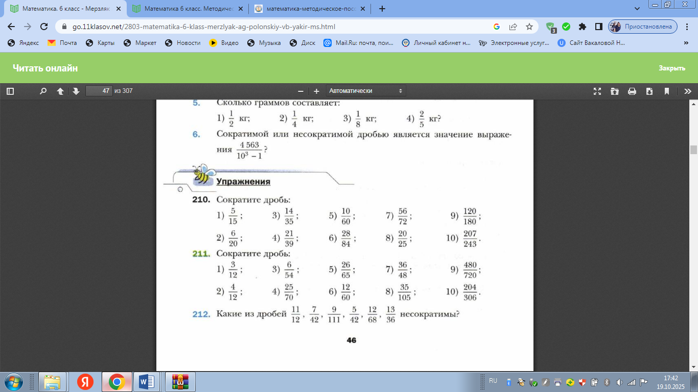 | 4.  Закрепление материала (18 мин) | Повторить, закрепить пройденный материал |  1. Работа с учебником: Решение примеров на сокращение дробей №210..(1.3,5,7,10)     2."Найди ошибку":     3.Задание со взаимопроверкой