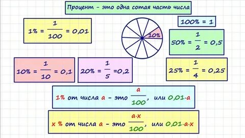 Чтобы хорошо понимать смысл этих предложений, необходимо запомнить, что процент это одна сотая часть числа.