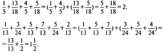 — Как это удобнее сделать? (Сгруппировать дроби, имеющие одинаковые знаменатели.)