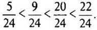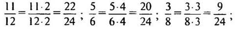 — Чему равен НОЗ всех дробей? (НОЗ этих дробей равен 24, так как 24 кратно всем остальным знаменателям.)