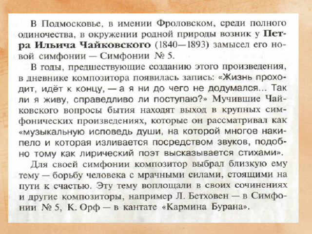 Презентация " В концертном зале. П.И. Чайковский «Симфония №5»