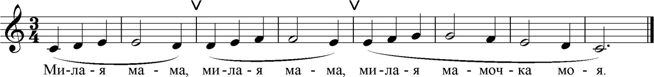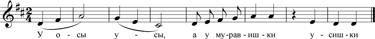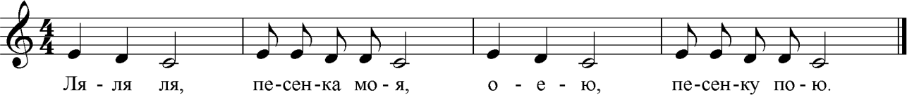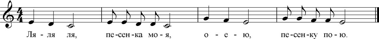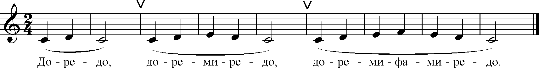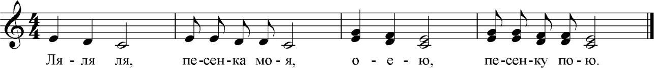 Для детей, начинающих занятия вокалом в возрасте 6-8 лет, характерно то, что они чисто интонируют в среднем диапазоне вокалиста («ре» - «ля» первой октавы). Для развития диапазона на первоначальном этапе я применяю распевки в нисходящем мелодическом движении: