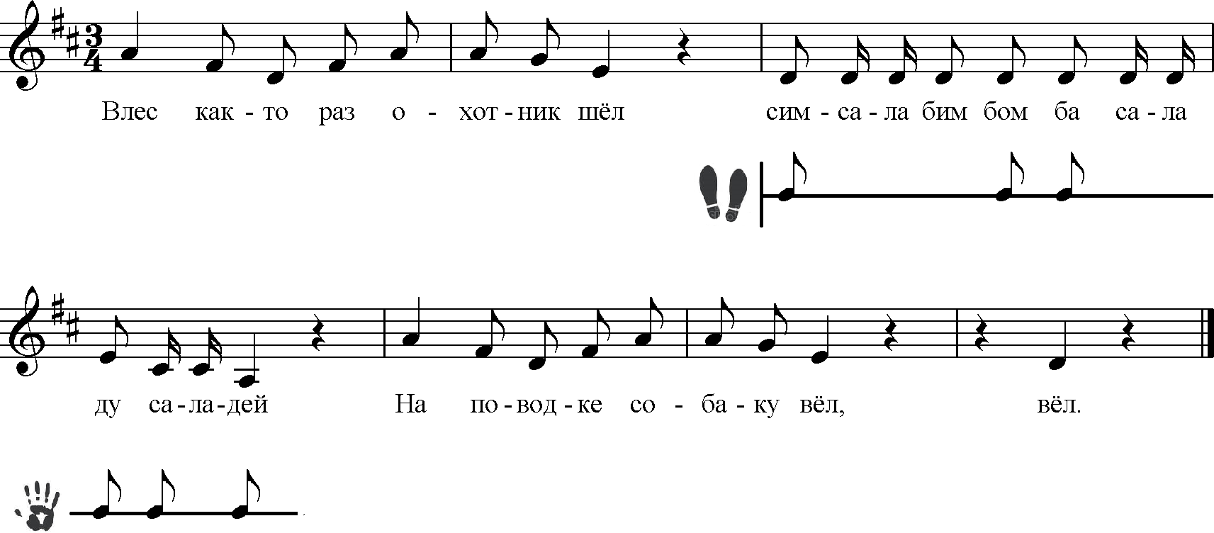 Также для этих целей применяется упражнение – песня «Охотник», где на припеве выполняется комплекс движений: