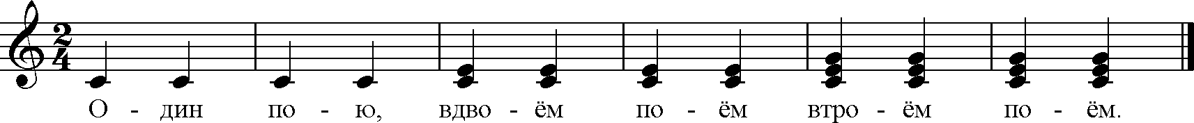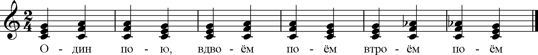 В последствии, когда одноголосные варианты интонационно освоены и закреплены, данное упражнение исполняется на 2 голоса: