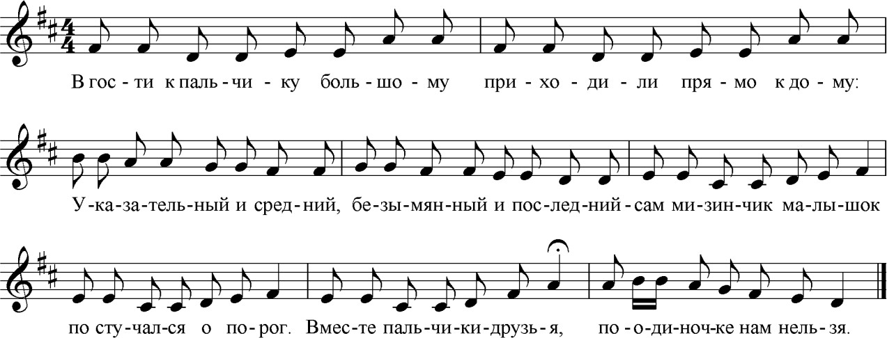 Это позволяет ребёнку осознать мелодию своей «партии» в комплексе двухголосного звучания, а также укрепляет интонацию. Следует следить за