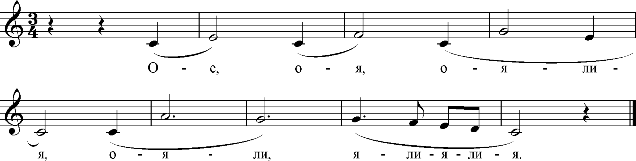 Примечание:при работе с детьми младшего возраста для лучшего запоминания и усвоения используются вокальные распевки на несложном текстовом материале, с постепенным введением отдельных гласных звуков или слогов.