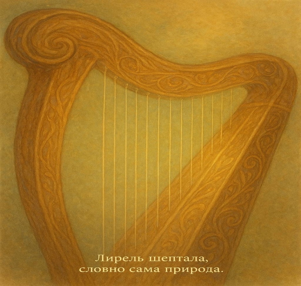 С этими словами арфа растворилась в первых лучах рассвета. Селение стало другим: люди стали собираться чаще, чтоб делиться своими историями, помогать друг другу и воспитывать детей в умении слышать не только слова, но и сердца. Иван взял в руки простую деревянную лиру, которую сделал сам, и иногда, глядя на рейки неба, улыбался — ведь он знал: где бы ни была Лирель, её музыка звучит там, где есть внимательность и доброта.