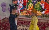 | Сахна безендіру: Орман көрінісі (ағаштар, гүлдер) Ортада кішкентай үйшік (макет немесе сурет) Әр кейіпкерге маска немесе қарапайым костюм Музыка: Орман дыбыстары (құстар, жел) Әр кейіпкер шыққанда жеңіл әуен Соңында көңілді музыка Ертеде бір Шал мен Кемпір өмір сүріпті. Бір күні шал кемпіріне: -Маған бауырсақ пісіріп берші,- дейді. -Неден пісіремін?Көп болды үйде ұн жоқ. -Әй кемпірім-ай! Сен қамбаны сыпырып, қуыс-мүйісін қырна осылайша қалған-құтқан ұнды жина. Кемпір шалының айтқанын істейді: қамбаны сыпырып, қуыс-мүйісті қырнап әзер дегенде екі уыстай ұн жинап, оны қаймаққа илеп, бауырсақ жасайды. Пешін жағып, табасына майын құйып, бауырсақты пісіруге қояды. Көп, аз уақыт өткені белгісіз үй ішін тәтті нан иісі алып кетеді. Бауырсақ- тегіс, домалақ, сырты қызаңқырап әдемі болып піседі. Шал оны бірден жегісі келеді, бірақ бауырсақ өте ыстық еді. Кемпір бауырсақты суытуға терезе алдына қояды. Бір өзі жатып- жатып жалыққан бауырсақ жерге түсіп, жерден шөпке, шөптен жолға түсіп әрі қарай домалай жөнеледі. Бауырсақ домалап отырып, көк майсалы жерлерден кең далалы егістіктерден өтеді. Осылай домалаған күйі қалың қараңғы орманға келіп тіреледі. Орманда оған қоян кездеседі. Қоян айтады: - Бауырсақ, бауырсақ! Мен сені жеймін! Бауырсақ оған былай жауап береді: - Мен атамнан, әжемнен кеткен бауырсақпын, сенен, қоян кетуге аса қулықтың қажеті жоқ. Осылайша бауырсақ әрі қарай домалай жөнеледі қоян оны дұрыс қарап та үлгермей қалады. Бауырсақ жалғыз аяқ жолмен домалап келе жатса, оның алдынан қасқыр шыға келіп: -Бауырсақ, бауырсақ мен сені жеймін! Содан Бауырсақ қара жолмен домалап кете барады. Оған Қасқыр кездесіп, оның да жегісі келеді. Бауырсақ өзінің әнін Қасқырға айтып беріп, одан әрі домалай береді. Бір кезде Аю жолығады: — Бауырсақ, Бауырсақ! Мен сені жеймін! – дейді ол. — Сендей майтабанға мені жеу қайда? Ұстатпай кеттім Атама, ұстатпай кеттім Әжеме, Қоян менен Қасқырға ұстатпағам ендеше. — Ал сендей ұстатпаймын мүлде де! Сөйтіп домалай жөнеледі. Аю тек көзімен шығарып салады. Бауырсақ домалағаннан домалап келе жатса оған Түлкі жолығады: — Бауырсақ, Бауырсақ, қайдан домалап барасың? — дейді ол. — Жолмен домалап барамын. — Бауырсақ, Бауырсақ, маған өлең айтып берші!… — Содан Бауырсақ: «Менің атым Бауырсақ, Бауырсақ! Қаймаққа иленгем, майға пісірілгем, терезеде суығам. Ұстатпай кеттім Атама, ұстатпай кеттім Әжеме. Ұстатпай кеттім Қоян менен Қасқырға. Ұстатпай кеттім Аюға, ұстатпаймын саған мүлде де!» деп өлеңін айтып береді. Түлкі оған: Әнің өте жақсы екен. Бірақ жөнді ести алмай тұрғаным. Бауырсақ, сен менің тұмсығыма шық та, әніңді тағы бір рет қаттырақ айтшы, — дейді. Бауырсақ Түлкінің тұмсығына домалап шығып алып бар даусымен әнін айтады. Сол кезде Түлкі ұстап алып оны жеп қояды. |
