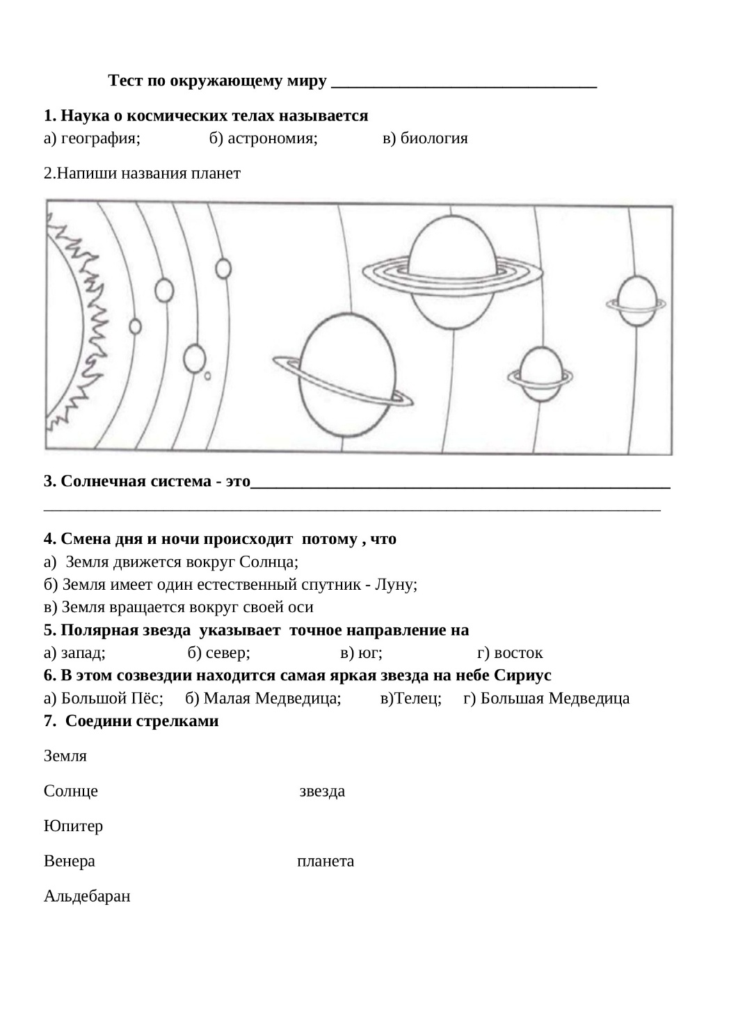 | 3. Этап открытия новых знаний /учебное действие 1. Постановка проблемы. 2. Работа с текстом учебника (повторение правил посадки). 3. Работа с схемами. 4. Чтение вывода по учебнику. 5. Работа над выводом | -Прочитайте пословицу. -Как вы думаете, о чем данная пословица. -Верно, мы все являемся частью Вселенной. Давайте все сегодня станем астрономами и будем изучать космос. Слайд (пустой) -Откройте учебник на странице 6. Работа в парах, напомните правила работы. -Первая парта найдет определение слову «Астрономия»,2 парта – Вселенная, 3 парта – Солнечная система. Сядьте правильно. -Что такое астрономия? -Что такое Вселенная? -Дайте определение Солнечной системе. Слайд (с задачами.) -Какой задачи нам удалось достичь. -Откройте учебник на странице 7. Рассмотрите схему. Найдите солнце и планеты. Представьте себе Солнце полностью, а планеты обращающимися вокруг него. Учтите, что планеты движутся по немного вытянутым орбитам. -С помощью схемы перечислите планеты в порядке их удаления от Солнца. -А теперь перечислите планеты в порядке их приближения к Солнцу. -Прочитайте вывод в учебнике на странице 9. -Что изучает астрономия? -Что такое Вселенная? Слайд (с задачами) -Какой задачи мы достигли? | Звезды появятся — небо украсят, знания появятся — ум украсят. Её смысл в том, что подобно тому, как звёзды украшают небо, знания украшают ум человека, делая его мудрее и умнее. Меркурий, Венера, Земля, Марс, Юпитер, Сатурн, Уран, Нептун. Небесные тела Все необъятное пространство со звёздами, планетами и другими небесными телами. | 5 мин. |