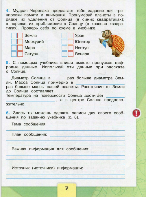 | 4. Действие контроля и самоконтроля Выполнение задания в рабочей тетради под руководством учителя. Работа в паре. Повторение правил работы в паре и на планшете. 3. Групповая работа. Повторение правил работы в группе и с интерактивным оборудованием. 4. Самостоятельная работа (оказание помощи, если дети испытывают затруднения). | -Выполним задание в рабочей тетради под номером 4. Прочитайте задание. -Помните про правильную посадку. Вам необходимо пронумеровать планеты. Даю время на выполнение. Показываем готовность. -Маша прочитай ответ в порядке их удаления от Солнца, то есть в синий квадрат. Читай планету и номер планеты. -Катя прочитай свой ответ, который ты записала в красный квадрат. -Остальные проверьте себя по схеме из учебника. У кого все сделано правильно покажите ладонь, у кого были ошибки кулачок. Парная работаwordwall.net/ru/resource/61718519 -Вспомним правила работы с планшетами. -У вас на столах лежат планшеты, отсканируйте кьюаркод с презентации, внимательно прочтите задание и выполните его в паре. У кого возникнут затруднения поднимите руку. Те, кто выполнил задание покажите готовность. -Если всё сделано верно покажите ладонь, если возникли затруднения кулачок. Групповая работа https://wordwall.net/ru/resource/31273272 -Как мы работаем в группах? -Вспомним правило работы у интерактивной доски и панели. -1 вариант у интерактивной доски, 2 у интерактивной панели. Вам необходимо установить последовательность планет Солнечной системы на схеме. -1 группа, всё ли задания получилось выполнить? -2 группа, всё ли задания получилось выполнить? Индивидуальная работа. - У вас на парте есть лист с заданиями. Прочитайте задания и выполните их. Будьте внимательны, можете начинать! Сядьте правильно. - Катя назови свой ответ 1 задания. А у кого другой вариант? - Посмотрите, какой задачи нам удалость достичь? | | 5 мин. |