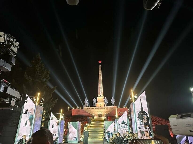 Учитель: В обновленном комплексе Острая Могила нашлось место для новейшей истории нашего города. У основания 20-метрового обелиска с рубиновой звездой четыре бронзовые фигуры воинов-защитников Луганска из разных исторических периодов: 1919 год, 1943 год, 2014 год, 2023 год.