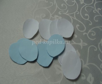Третий и четвертый клеим между ними. Так бутон получается пышнее.
