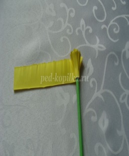 2.Приклеиваем нашу бахрому к трубочке - стебельку.