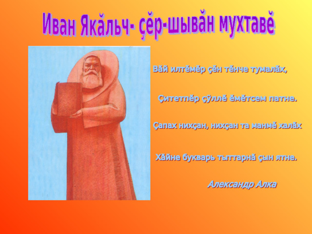 «Юрататăп эпĕчăвашсене, вĕсене ырăтунисĕр пуçне мана урăх нимĕн те кирлĕмар.»И.Я.Яковлев