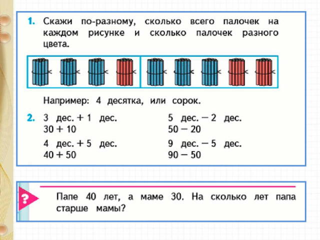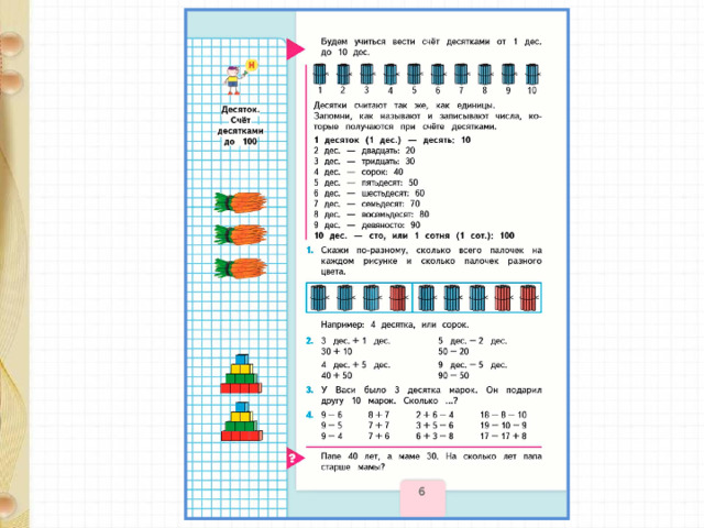Десятки. Счёт десятками до 100. Числа от 11 до 100. Образование чисел  Урок № 2-3