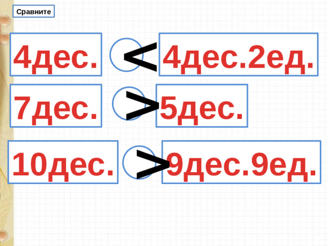 46 = 4 дес. 6 ед. 63 = 6 дес. 3 ед. 100 = 10 дес.