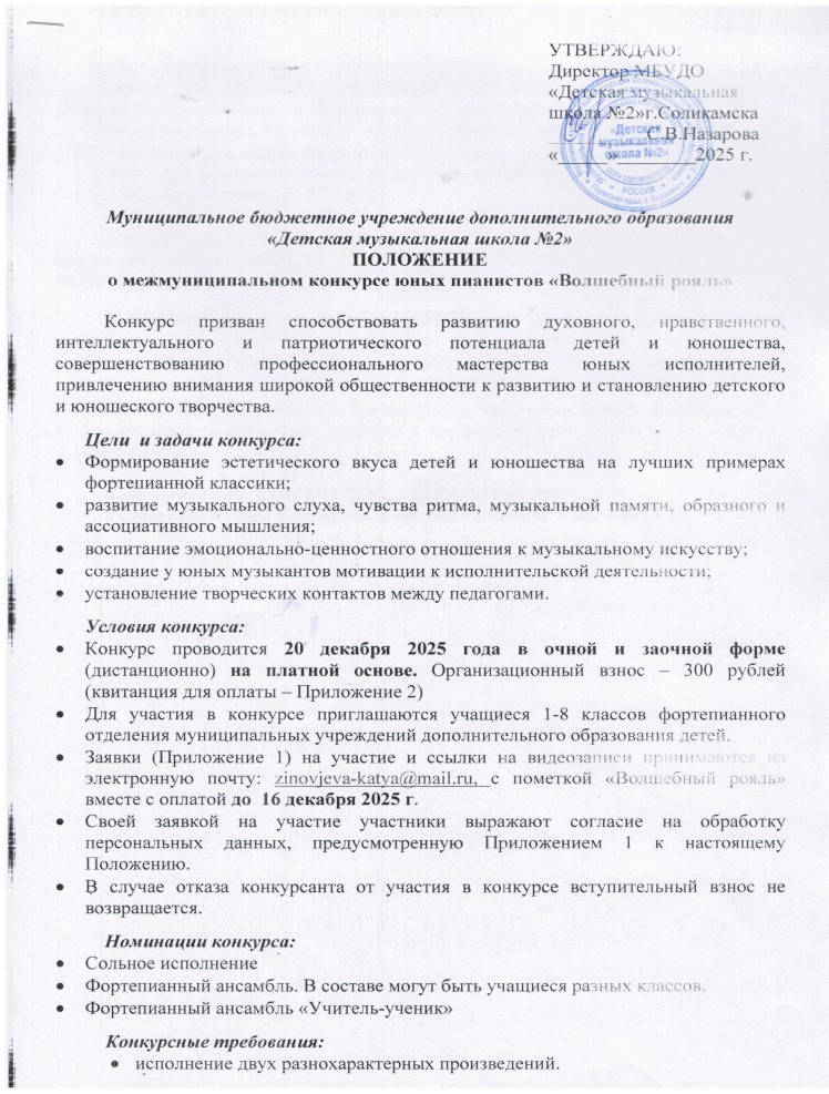на участие в межмуниципальном конкурсе юных пианистов «Волшебный рояль»