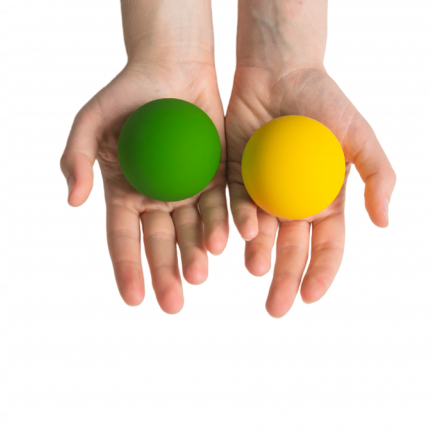 Кинезиологические мячи - цветные мячи без ворса, с высоким отскоком от пола. Размер – 6 см, оптимальный для ладони, в том числе и детской. Цвета однотонные, минимум 2 цвета. Базовые – зеленый, красный, желтый, синий.