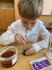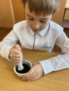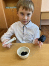 Также попробовал активированный уголь смешать с мёдом и нарисовать ри- сунок. Цвет получился светлее (серый) и рисунок долго высыхал (Приложение 2).