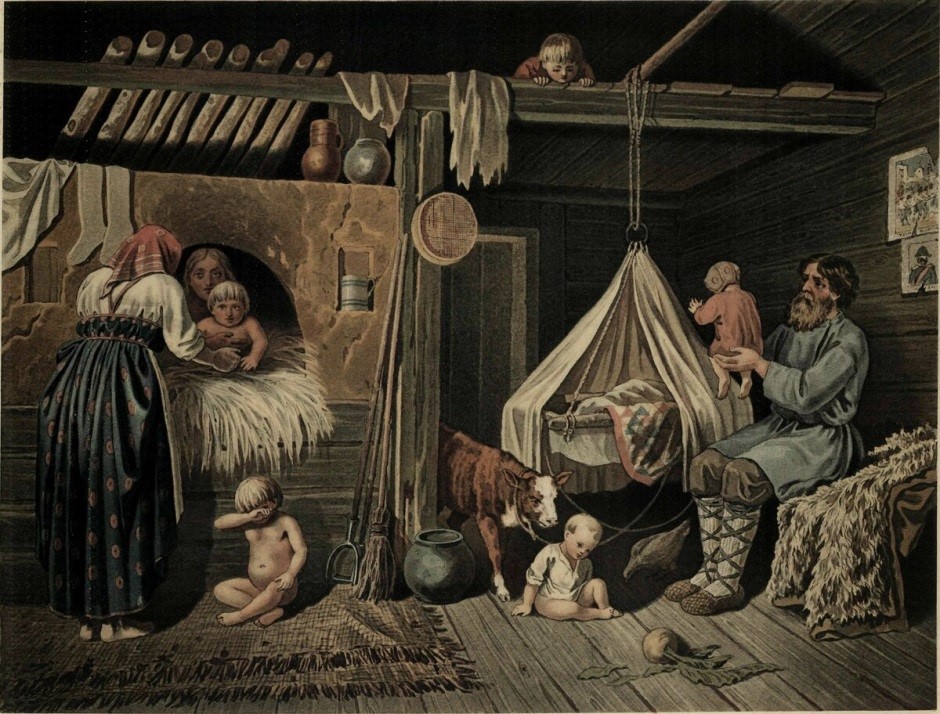 Самое теплое место в доме было на полатях. На них спали, общались – вечерами дети рассказывали всевозможные истории – печь придавала таинственности, давая простор детскому воображению. Печку упоминали в сказках – например, теплая лежанка взрастила такого богатыря, как Илья Муромец, была она идеальным местом укрытия для Маши и её братца Иванушки («Гуси-лебеди»), а ещё служила уникальным средством передвижения Емели к царю («По щучьему велению»).