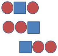 Ксюша вырезала из бумаги 2 красных одинаковых круга и 1 квадрат. Расположите эти фигуры в один ряд. ( Сколько способов вы выявили?)